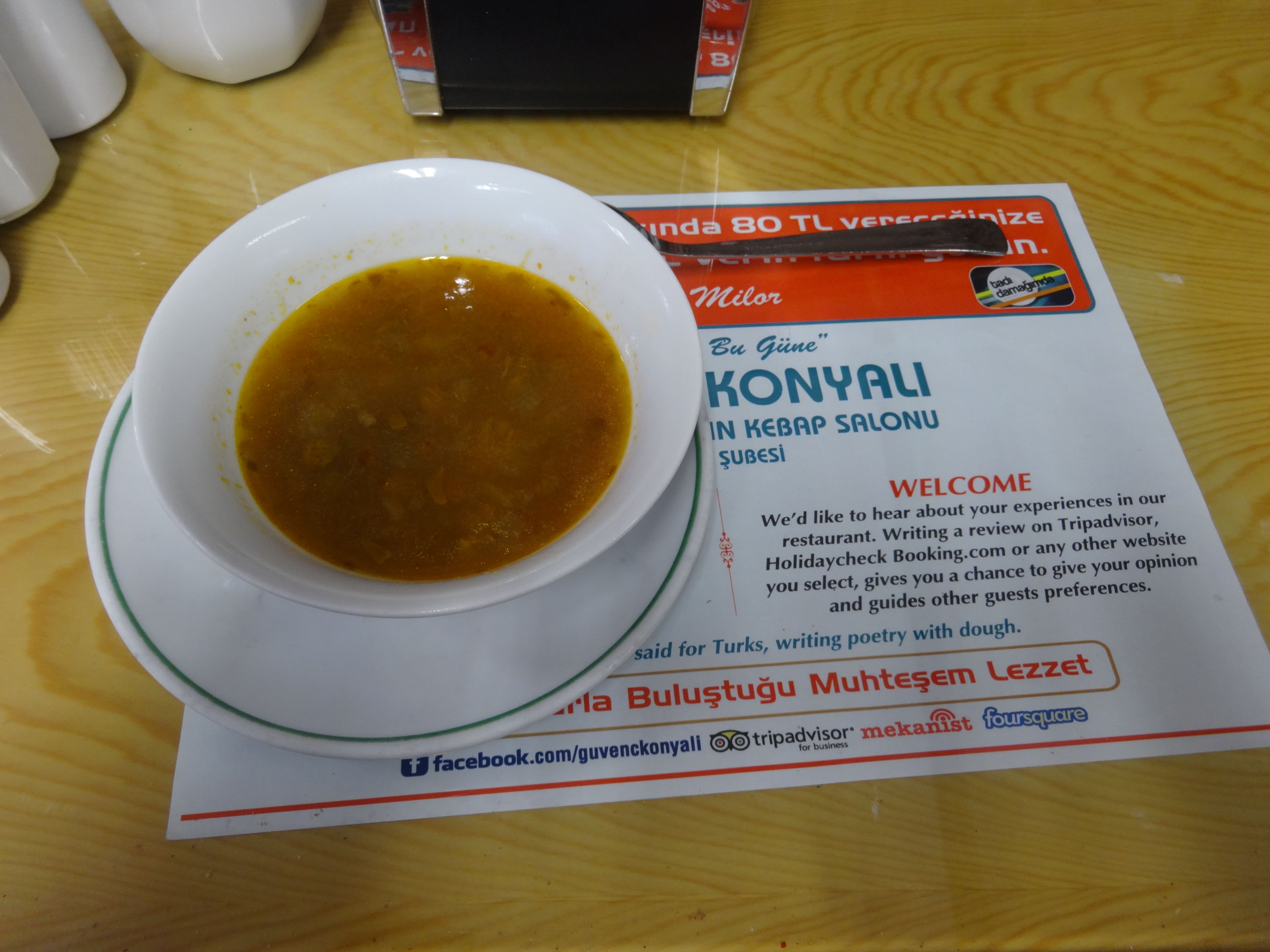 Istanbul Nov 8, 2014 013 Published July 25, 2015 at 4896 × 3672 in Missy Skoog’s Culinary and Historic Tour of Istanbul, Turkey Turkish soup ← Previous Next →