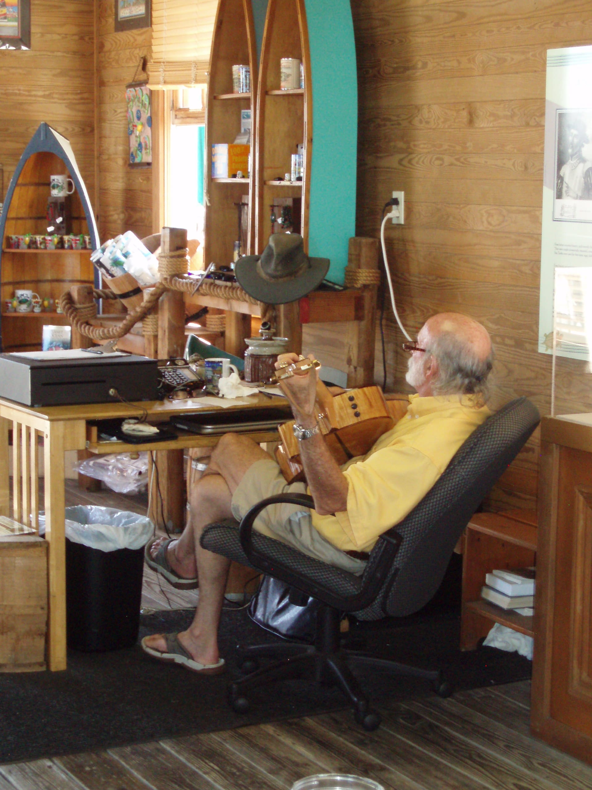 In the Marina we walked into the turtle museum to find this laid back I love Key West gentlemen singing a tune for us