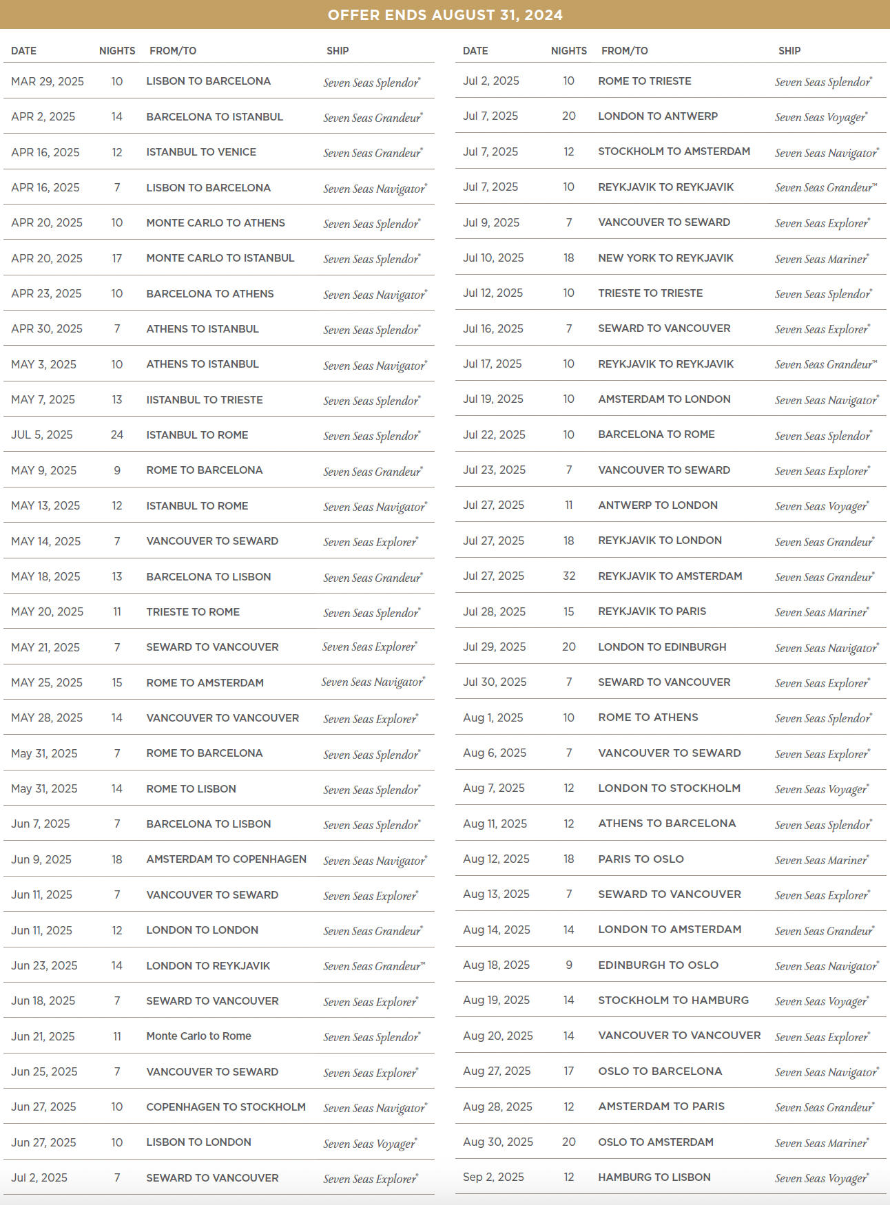 Regent Sailings