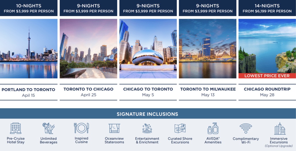 Enjoy clear waters on a Canadian Maritimes, Great Lakes, or Round-Trip Chicago voyage and unlock special year-end savings on select 2026 departures. With limited-time fares starting at just $3,999 per person, now is the ideal moment to secure exceptional value across our most in-demand itineraries.